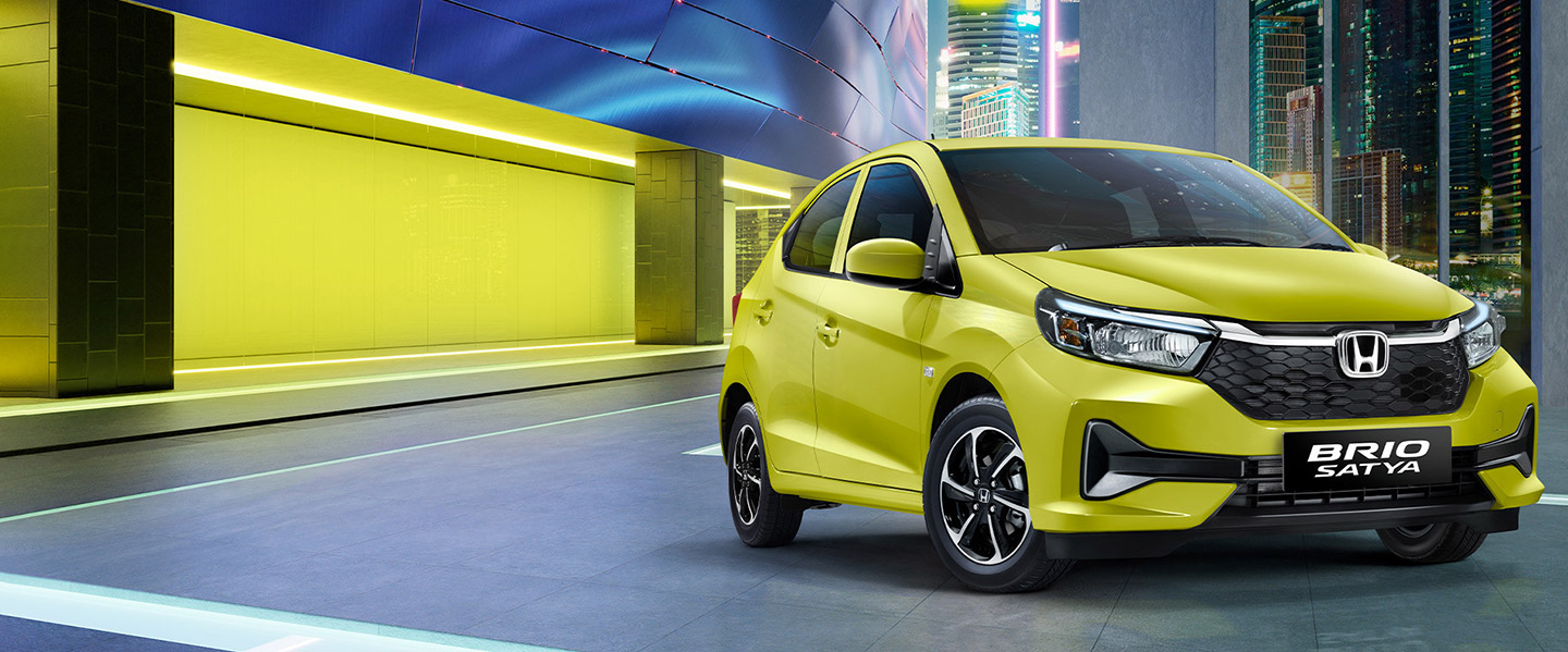New Honda Brio Satya (E M/T dan E CVT) kini tampil semakin memikat dan juga stylish untuk menemani aktivitas sehari-hari. New Honda Brio Satya kini hadir dengan penambahan berbagai fitur baru berupa; New Headlamp with LED Daytime Running Light, New Chrome Front Grille Design, New 14" Two Tone Alloy Wheel serta New Front Bumper Design. Sementara pada bagian interior, New Honda Brio Satya kini hadir dengan New Auto Up/Down Window with Anti-Pinch, kemudian warna interior baru yaitu New Seat Pattern Design, door lining dan dashboard dipadu dengan warna abu-abu pada bagian roof lining-nya.